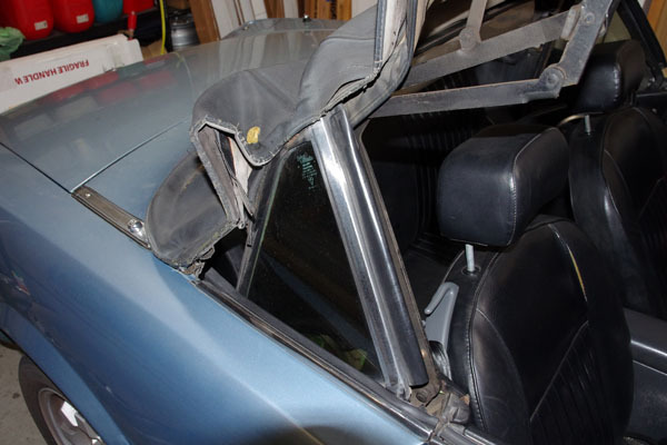 張り替えようと思い幌を開けたものの、開いたきり閉まらいない。